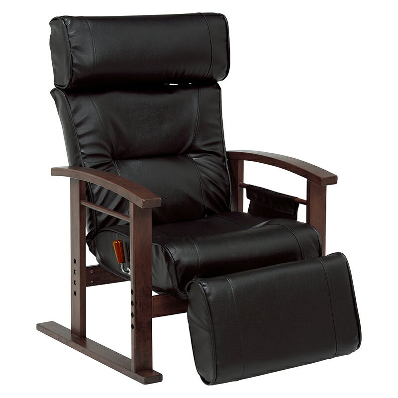 脚付きパーソナルチェア (イス 椅子) 背部5段階/頭部14段階リクライニング 肘掛け RKC-39BR ブラウン 茶